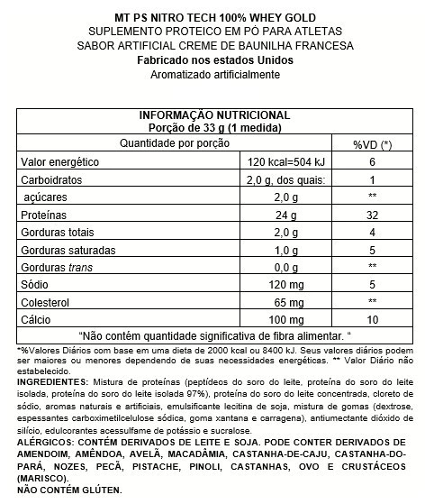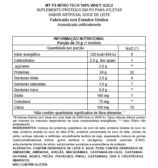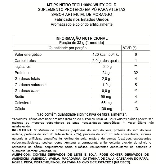 Cada dose do Nitro Tech 100% Whey Gold oferece 24g de proteína, 5,5g de BCAA e 4g de glutamina. É uma das principais marcas em suplementação, desenvolvendo agora, uma fórmula baseada em fontes de proteína superior com qualidade também de fabricação.